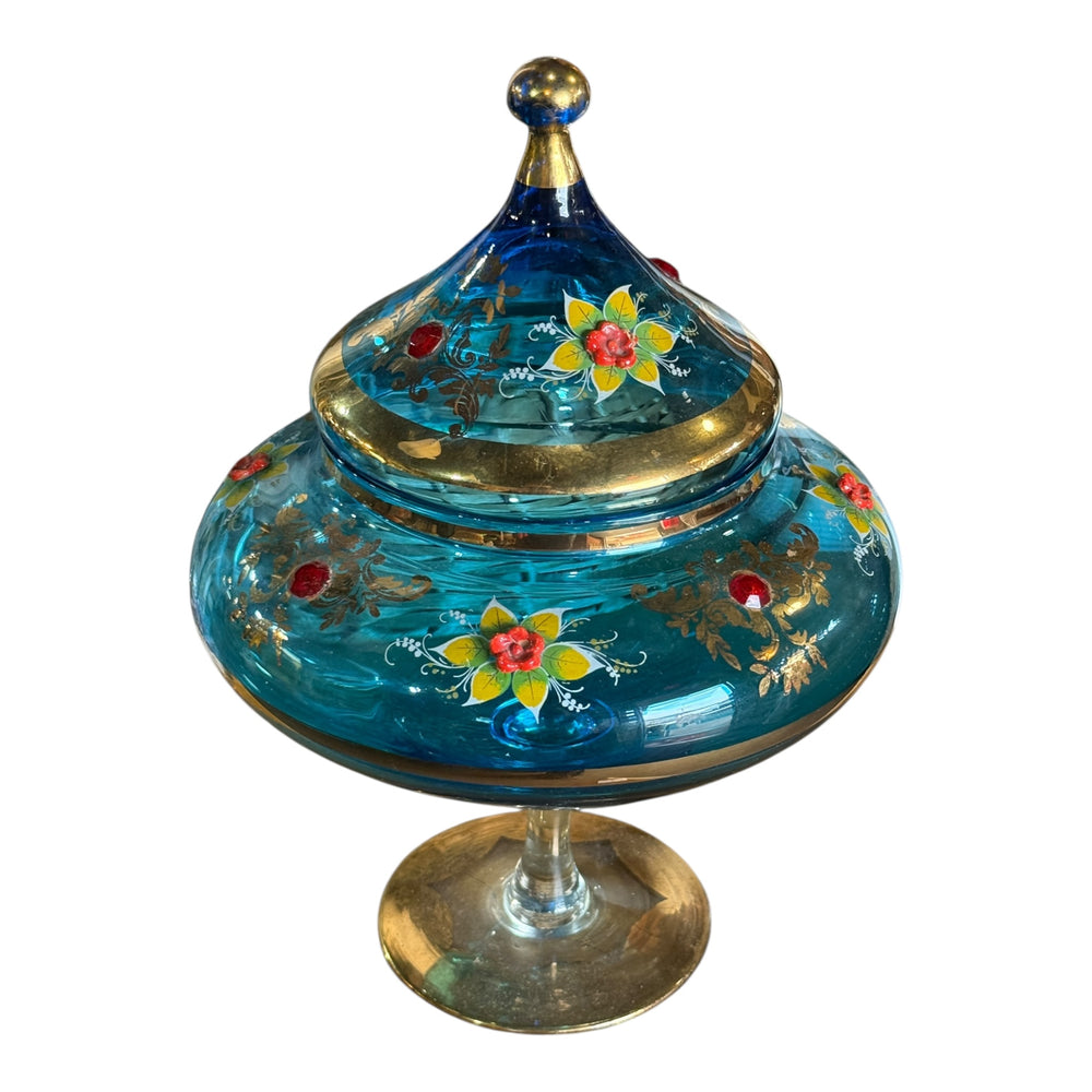 Vintage Moser Bohemian Czech Floral Jewels and Gold Glided Blue Jar Large
