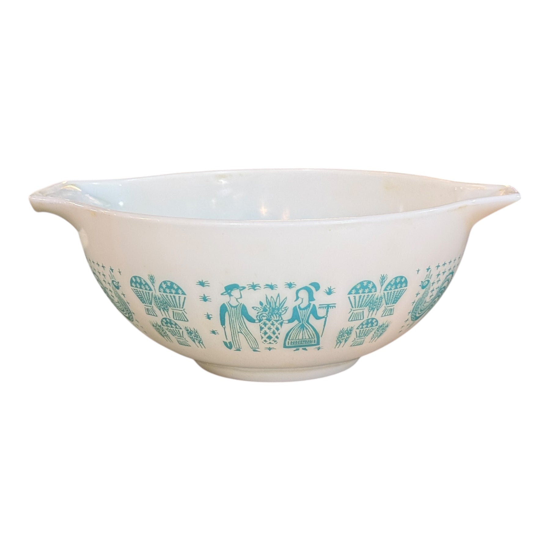 Vintage Pyrex Blue Turquoise Butterprint Rooster 2.5 Qt 443 Nesting Mixing Bowl