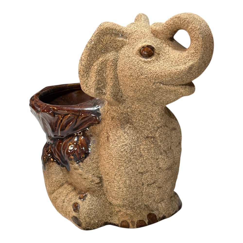Royal Haeger Pottery Lucky Baby Elephant Planter Sand & Brown Glaze 9"